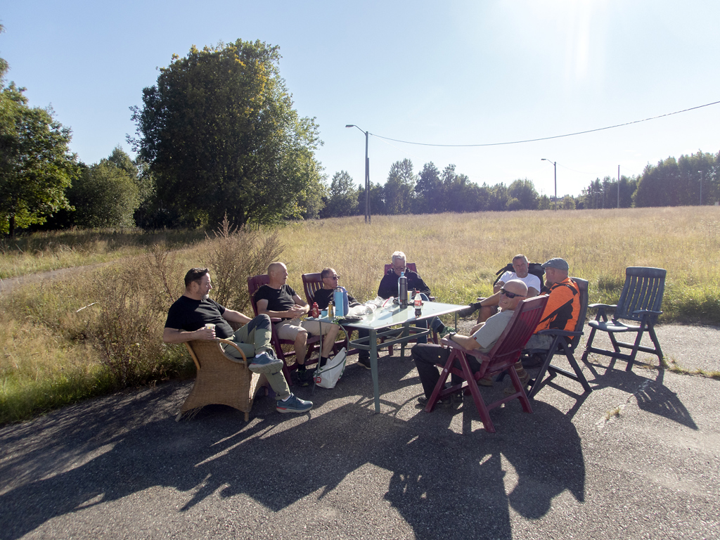 Det er viktig med ei pause med kaffe og noe å bite i. Litt juging
